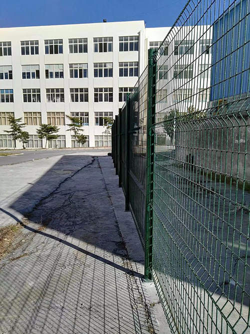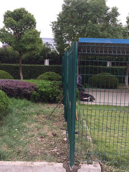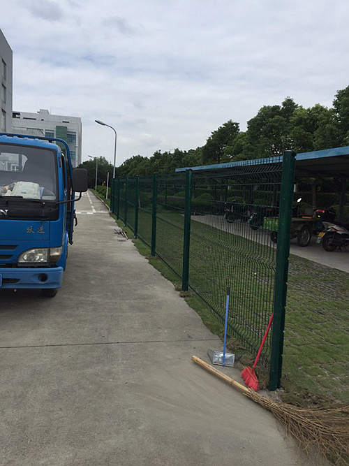 下圖是蘇州工業(yè)園區(qū)一家化工企業(yè)為區(qū)域分隔采購的蘇州桃形柱護(hù)欄網(wǎng)安裝時(shí)拍攝的照片?蛻暨x擇的是桃形柱護(hù)欄網(wǎng),立柱用的100*70mm桃形柱,鋼絲直徑為浸塑后5.0mm,網(wǎng)孔間距為50*200mm,這批南京護(hù)欄網(wǎng)的立柱和網(wǎng)片均是墨綠色。