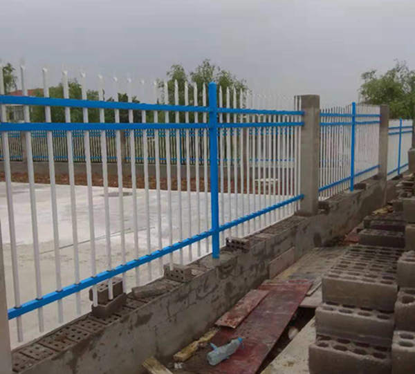 馬群藍(lán)白色三橫桿鋅鋼護(hù)欄價(jià)格全部安裝完成